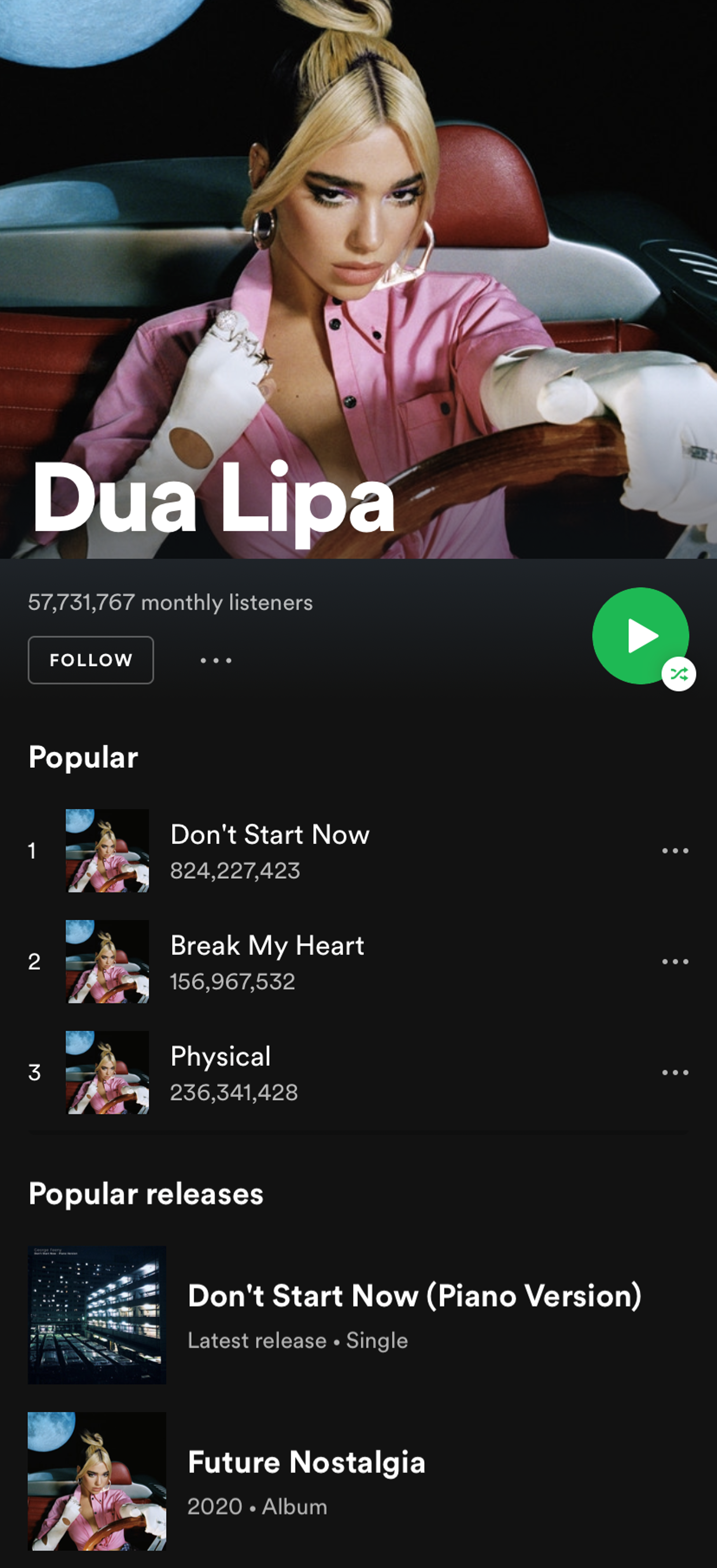 1+ million streams in first year, featured on Dua Lipa’s artist page