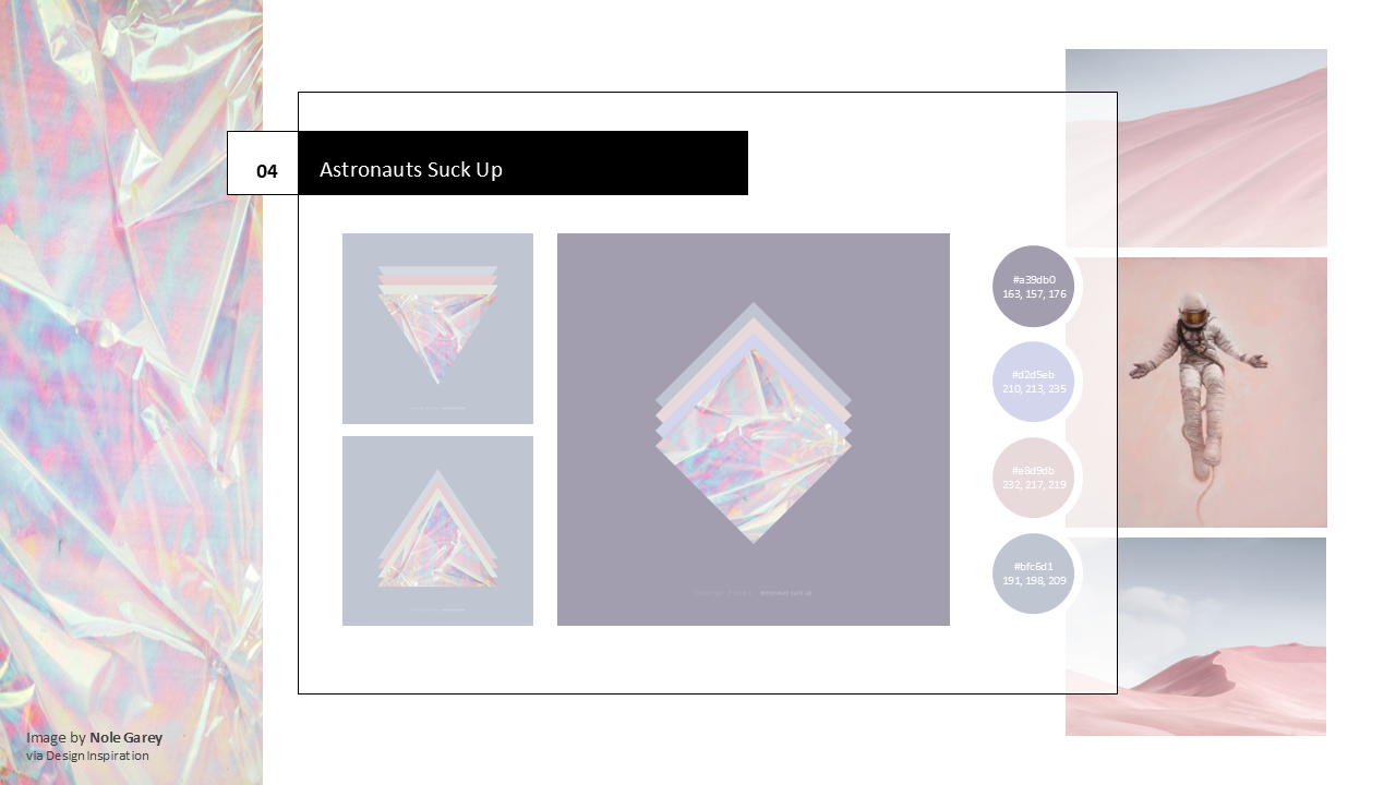 My approach was to first establish a visual language that aligned with George Feeny’s vibe of introspective lo-fi beats and atmospheric soundscapes. I then unified the collection using consistent yet distinct composition, textural contrast, and color theory.